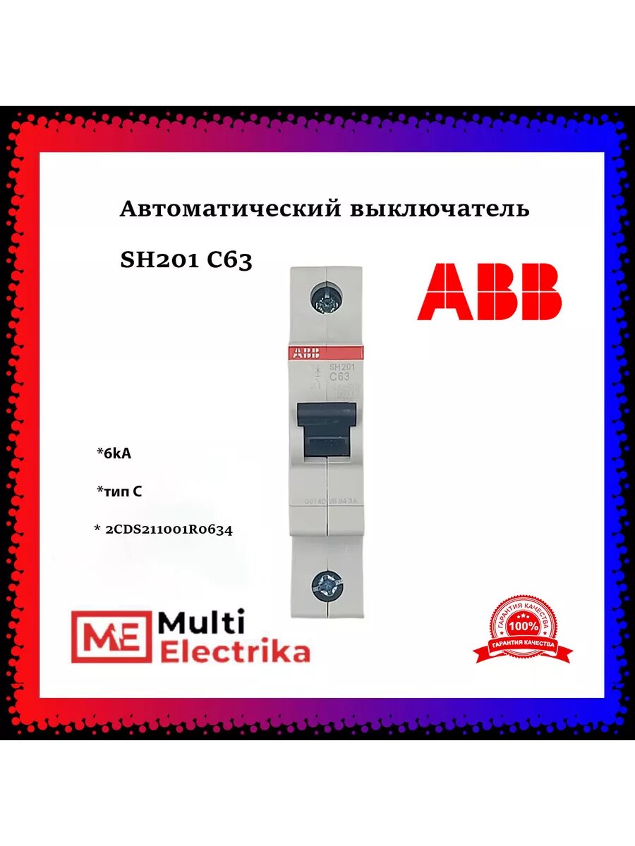 SH200 2CDS211001R0064 Автоматический выключатель однополюсный 6А (6 кА C) ABB