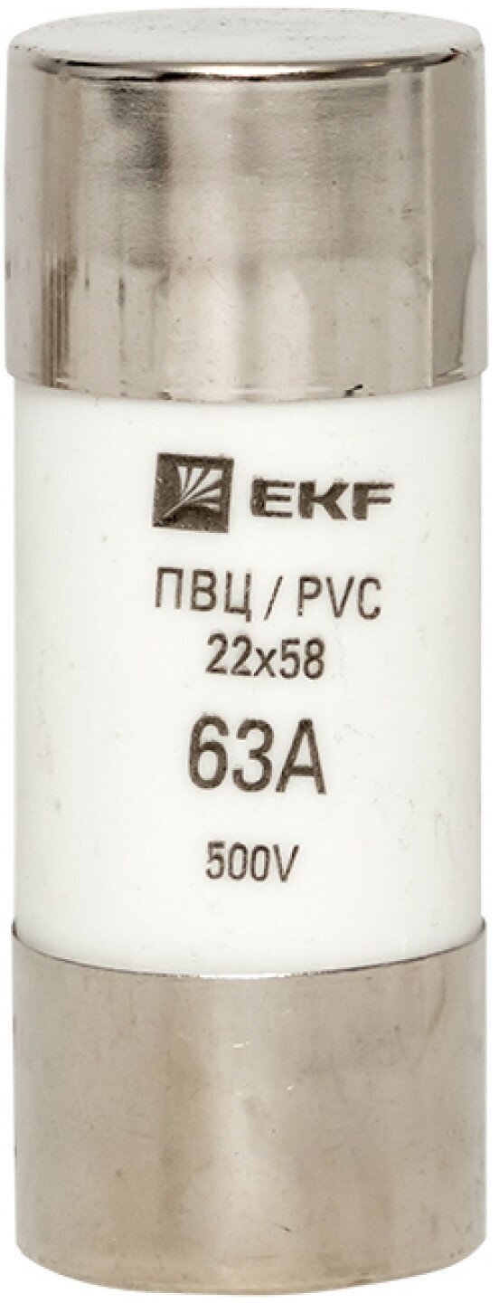 pvc-22х58-63 Плавкая вставка цилиндрическая ПВЦ (22х58) 63А PROxima EKF (размер: 22х58 мм)