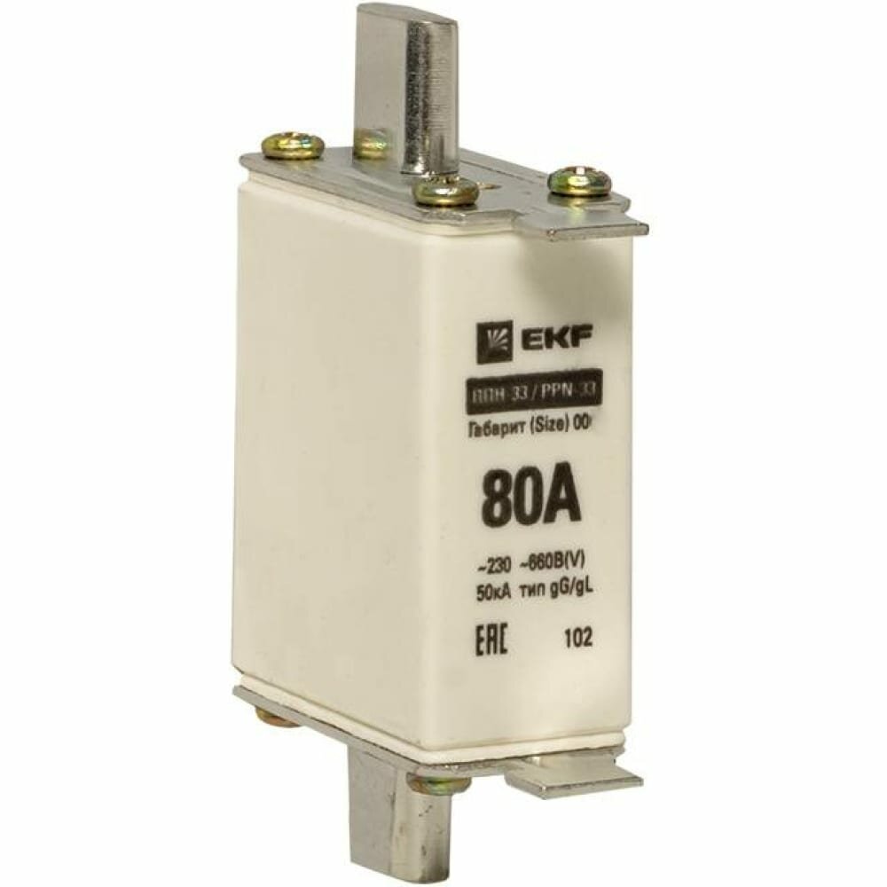 ОПИСАНИЕ. Предохранители плавкие ППН EKF PROxima предназначаются для защиты кабельных линий и промышленных электроустановок от токов перегрузки и короткого замыкания. Предохранители применяются в электрических сетях переменного тока частотой 50 Гц с напряжением до 660 В и устанавливаются в низковольтные комплектные устройства, например, в распределительные панели ЩО-70, вводно-распределительные устройства ВРУ1, шкафы распределительные силовые ШРС1 и т. п. ПРЕИМУЩЕСТВА. Корпус предохранителя изготовлен из керамики. Широкий нож большая площадь контакта. Габаритные размеры предохранителей на ~15% меньше предохранителей ПН-2. Наличие индикатора срабатывания. Корпус предохранителей засыпан мелкодисперсным кварцевым песком. Плоская контактная пластина у держателя плавких вставок большая площадь контакта. Повышенный уровень теплорассеивания за счет массивных ножей предохранителя. Предохранители монтируются и демонтируются с помощью универсального съемника. Широкая медная пластина плавкая вставка EKF соответствует номинальному току. ПРИМЕНЕНИЕ. Предохранители плавкие предназначены для защиты кабельных линий и промышленных электроустановок от токов перегрузки и короткого замыкания. Используются: в распределительных панелях ЩО-70; вводно-распределительных устройствах ВРУ; шкафах распределительных силовых ШРС.