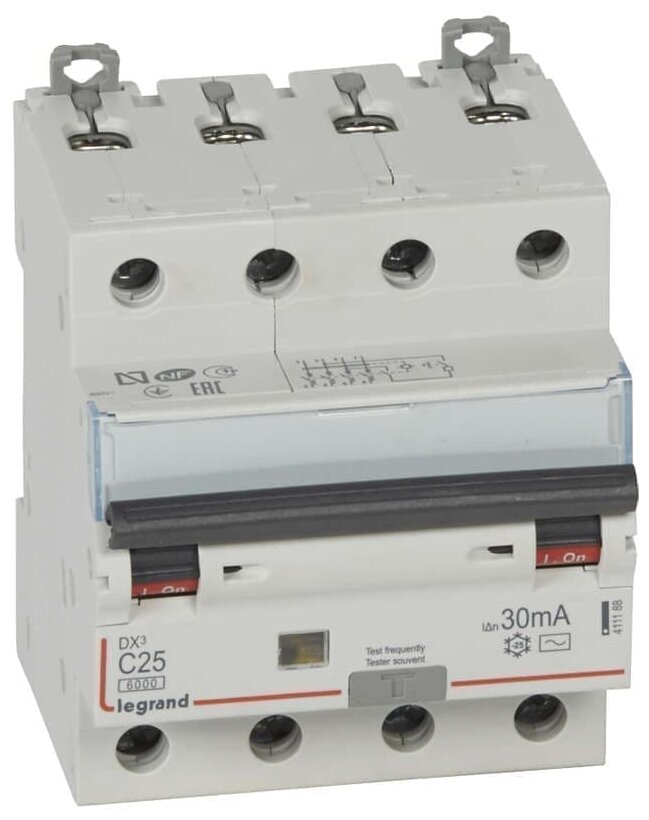 DX3 411189 Автоматический выключатель дифференциального тока четырехполюсный 32А (тип AC 6 кА) Legrand