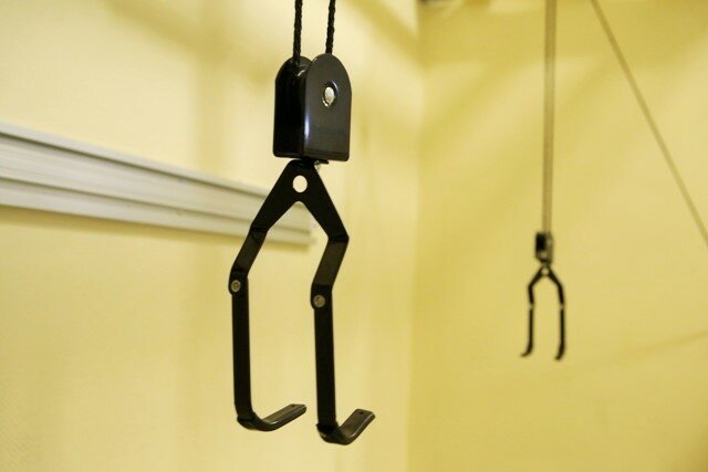 Подъемный механизм (лифт) - идеальный способ для хранения велосипеда.Экономит пространство в помещении и защищает шины велосипеда.В Механизме используется система из верёвки и шкива, которая устанавливается на потолке.Механизм позволяет поднимать и опускать велосипед на нужную высоту.Для потолков не более 4 метров.Максимальная нагрузка 20 кг.Кроме хранения велосипедов, подходит для хранения каяков, автомобильных багажников и прочих вещей, которые периодически востребованы и требуют быстрого доступа.Размер упаковки ВШГ: 26 x 13 x 10 см.Вес: 1,71 кг.