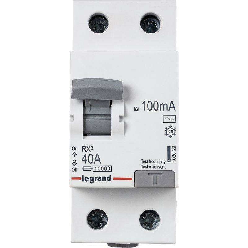 RX3 402029 Выключатель дифференциального тока двухполюсный 40А 0.1А (тип AC) Legrand