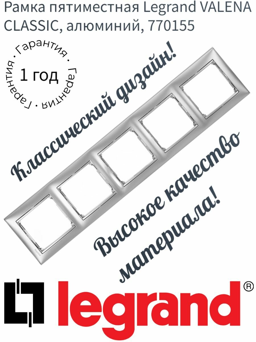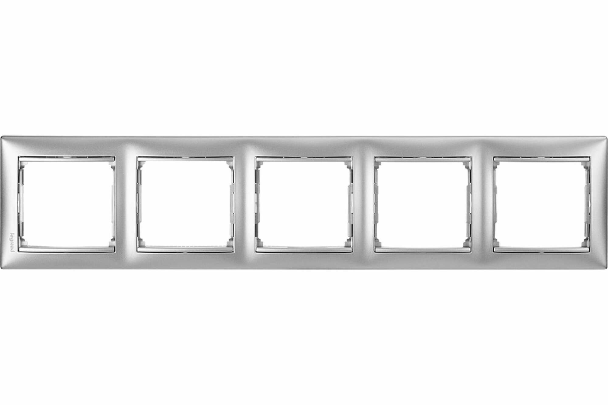 Valena 770155 Рамка 5-постовая (универсальная алюминий) Legrand (размер: 81 x 365мм)