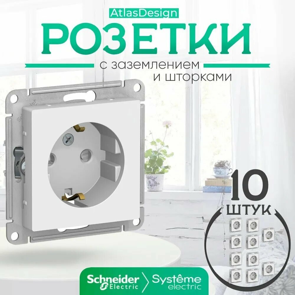 AtlasDesign ATN000745 Розетка с заземляющим контактом (16 А под рамку шторки скрытая установка грифель) Schneider Electric ATN000745 AtlasDesign