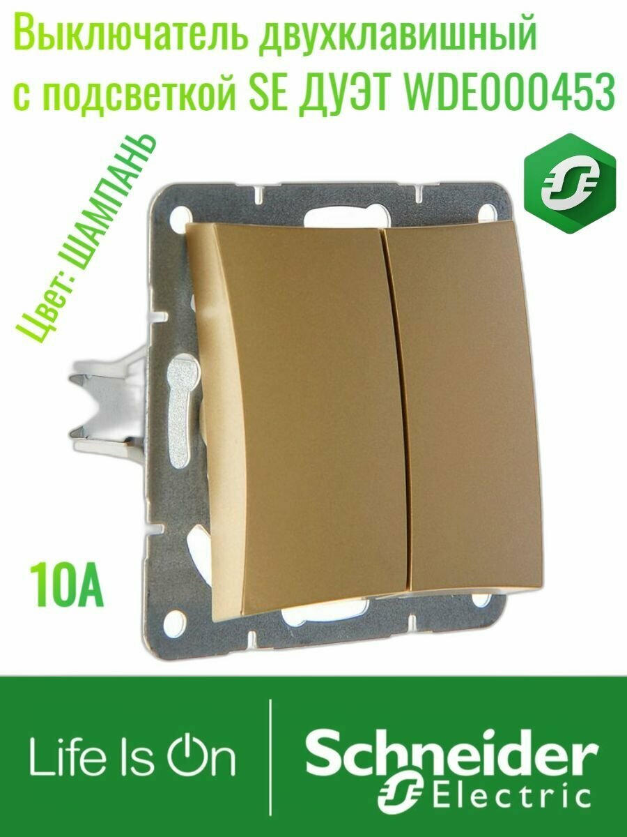 WDE000453 ДУЭТ 2-клавишный ВЫКЛЮЧАТЕЛЬ с подсветкой сх.5а 10АХ механизм ШАМПАНЬ Schneider Electric