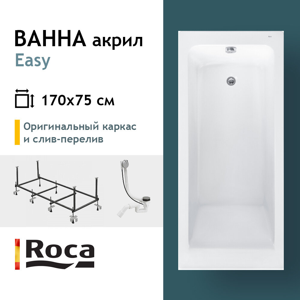 Easy ZRU9302899 Ванна прямоугольная 170x75 см (акрил белый) Roca