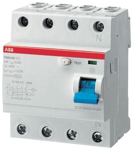 F200 2CSF204201R3630 Выключатель дифференциального тока четырехполюсный 63А 300мА (тип А) ABB