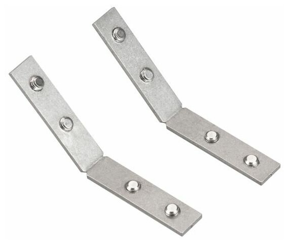 Угловой, наклон 135 градусов к плоскости, соединитель к профилям из неанодированного алюминия или окрашенного в цвета RAL. Устанавливается в пазы профиля, фиксация на 4 винта под шестигранник 1.5 мм. Для надежного соединения рекомендуется 2 шт.