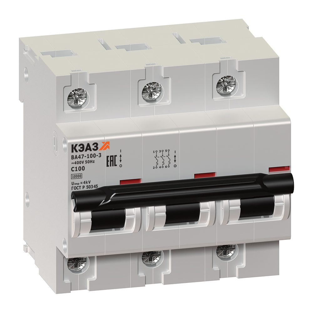 ВА47-100 141632 Автоматический выключатель трехполюсный 100А (10 кА D) КЭАЗ