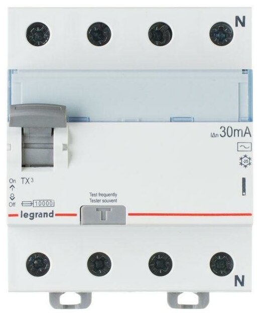 TX3 403009 Выключатель дифференциального тока четырехполюсный 40А 30мА (тип AC) Legrand