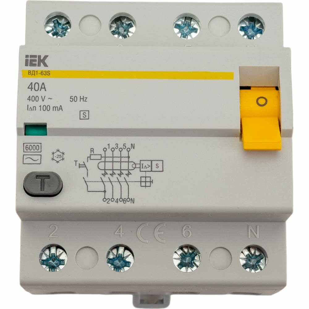 ВД1-63 MDV12-4-040-100 Выключатель дифференциального тока четырехполюсный 40А 100мА (тип AC) IEK