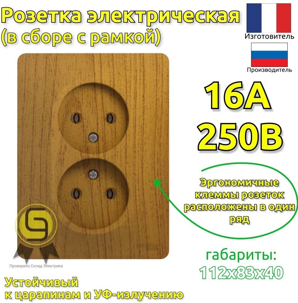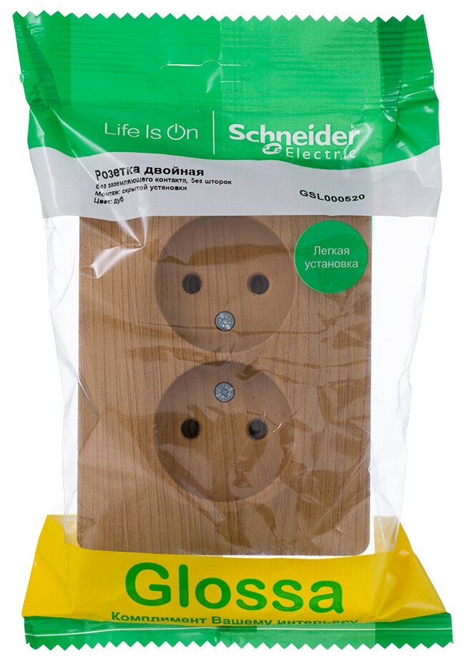 Glossa GSL000520 Розетка двойная без заземляющего контакта (16 А в сборе скрытая установка дуб) Schneider Electric GSL000520 Glossa