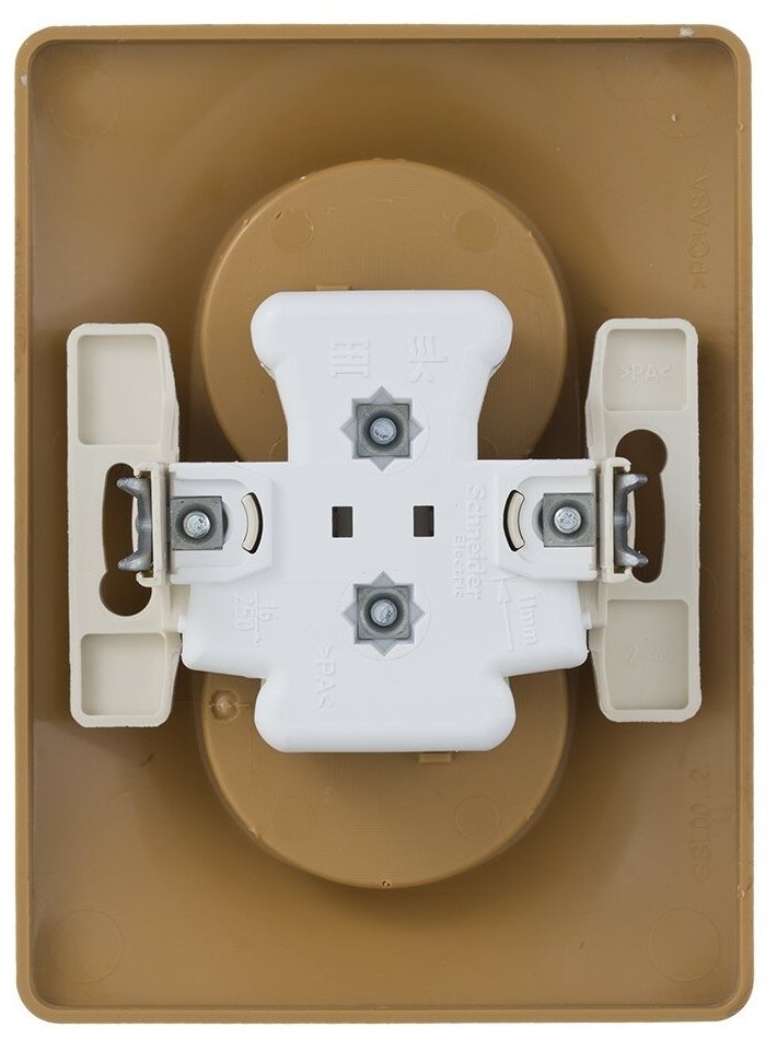 При непопадании вилкой в отверстия с первого раза, царапается серая краска, под ней белый пластик. На бежевом цвете такого не должно быть, т.к. там сам пластик бежевый, сверху краска не нанесена. На некоторых розетках есть остатки пластика на отверстиях клемм, приходится пробивать проводом. Вилка вынимается довольно легко, выдирать не приходится, но фиксированно, не болтается. Накладка не сильно толстая. Производство: Россия.