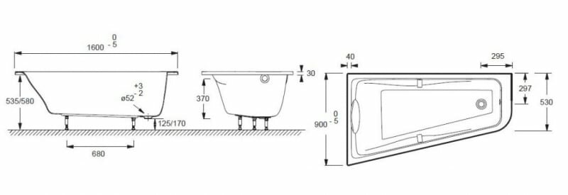 Odeon Up E6065RU-00 Ванна левосторонняя (160х90 см) Jacob Delafon