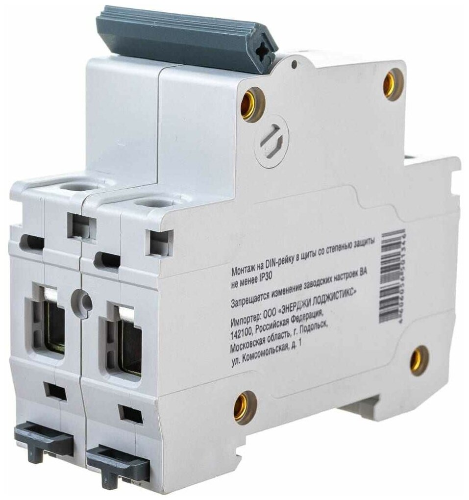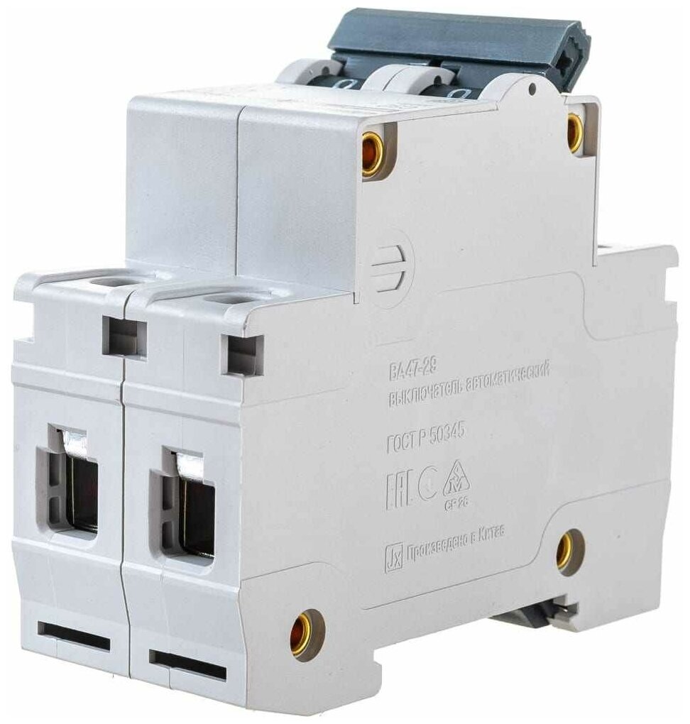 Модульный автоматический выключатель для защиты цепей переменного тока от короткого замыкания и перегрузки. Устанавливается на DIN-рейку.