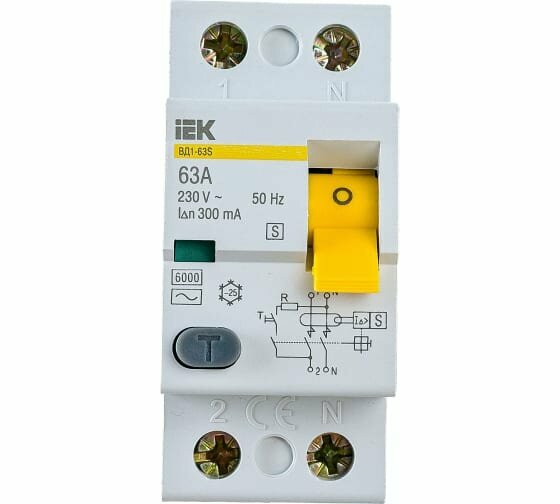ВД1-63 MDV12-2-063-300 Выключатель дифференциального тока двухполюсный 63А 300мА (тип AC) IEK