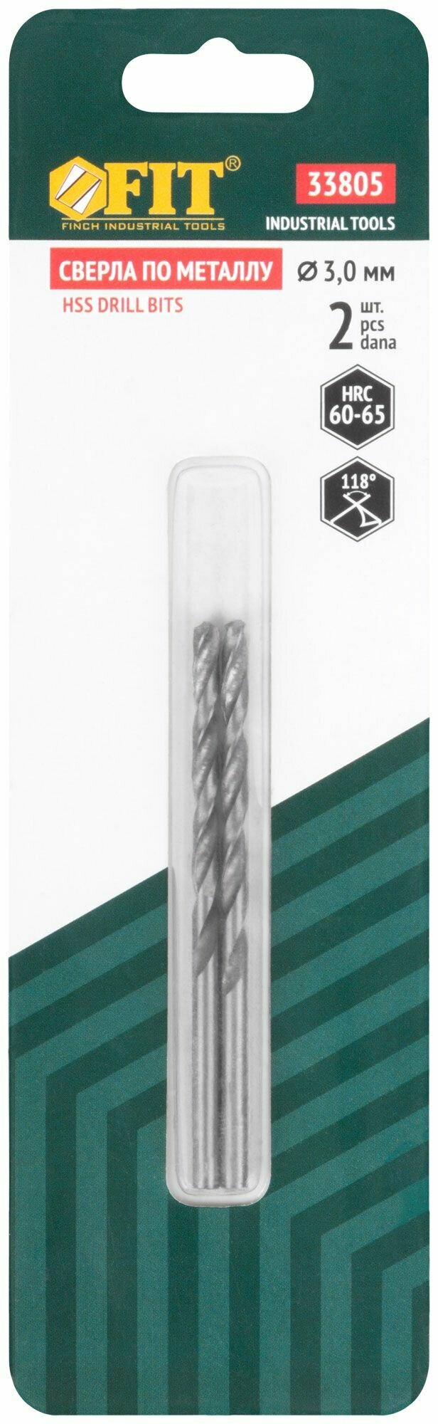 33805 Сверло по металлу 3.0 мм (HSS полированное покрытие в блистере 2 шт) FIT
