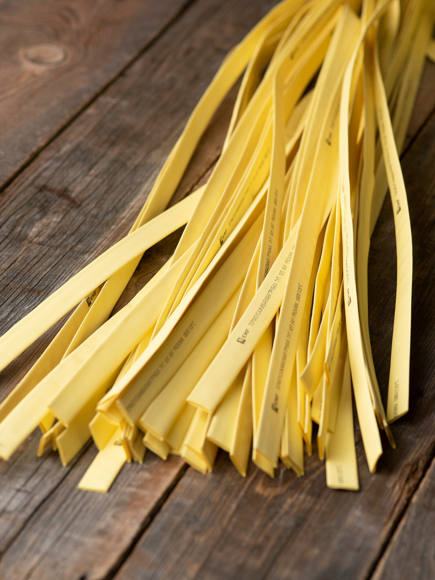 Термоусаживаемая трубка ТУТнг 10/5 желтая EKF PROxima Полиэтиленовая термоусаживаемая трубка ТУТ может использоваться как электроизоляционный, маркировочный и декоративный материал. Предназначена для герметизации муфт, заделки концов кабелей с помощью колпачков, изоляции кабелей, изолирования жил, мест соединения проводов, бандажирования жгутов проводов, для механической защиты изделий, для защиты от грязи, для цветовой маркировки изделий и т. д. Основное свойство термоусаживаемой трубки – способность сжиматься (усаживаться) под воздействием высокой температуры (от 90 до 125°С). Процесс усадки происходит очень быстро, трубка ТУТ полностью повторяет контуры предмета. Можно использовать тепловой пистолет (фен), что делает термоусаживаемую трубку легкой в бытовом применении, например, в качестве альтернативы изоляционной ленте.