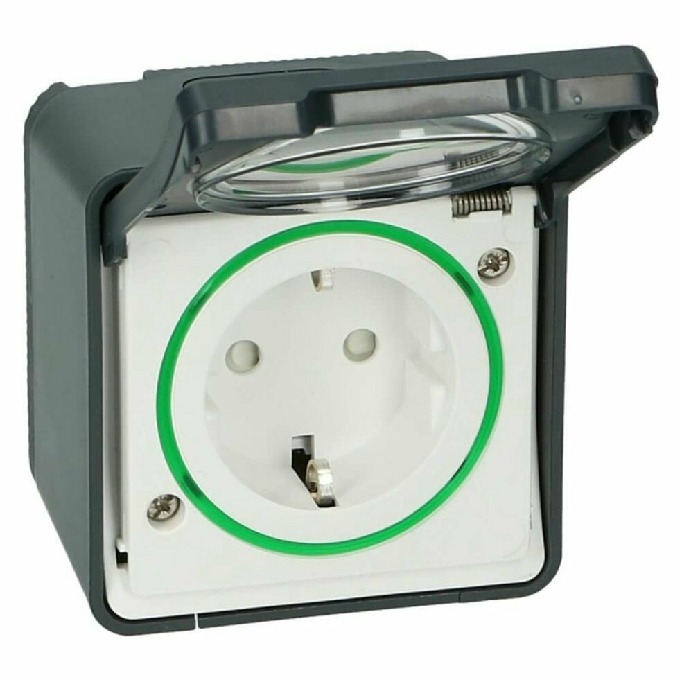 Практичная розетка с высокой степенью защиты от пыли и влаги для открытого монтажа.