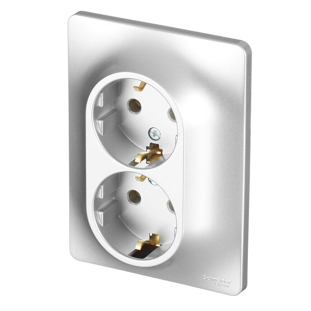 Glossa GSL000324 Розетка двойная с заземляющим контактом (16 А в сборе скрытая установка алюминий) Schneider Electric GSL000324 Glossa