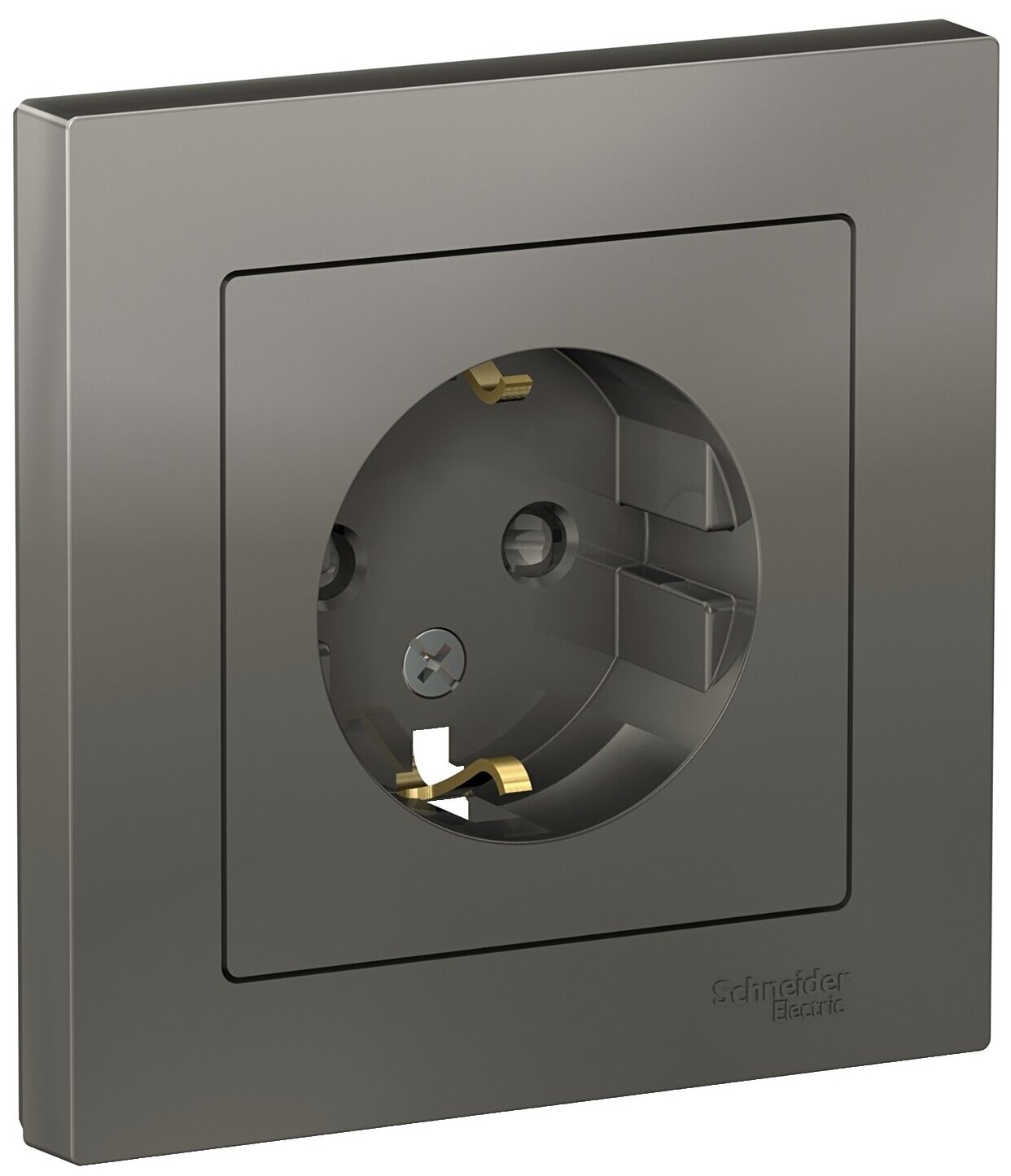AtlasDesign ATN000944 Розетка с заземляющим контактом (16 А в сборе шторки скрытая установка сталь) Упаковка (5 шт.) Schneider Electric