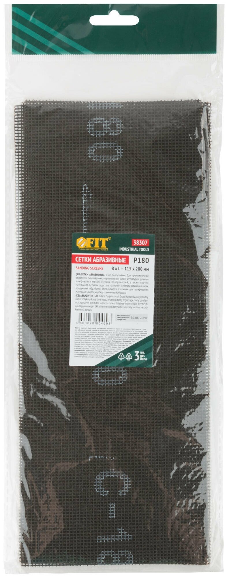 38307 Сетка шлифовальная Р180 (115х280 мм 3 шт.) FIT