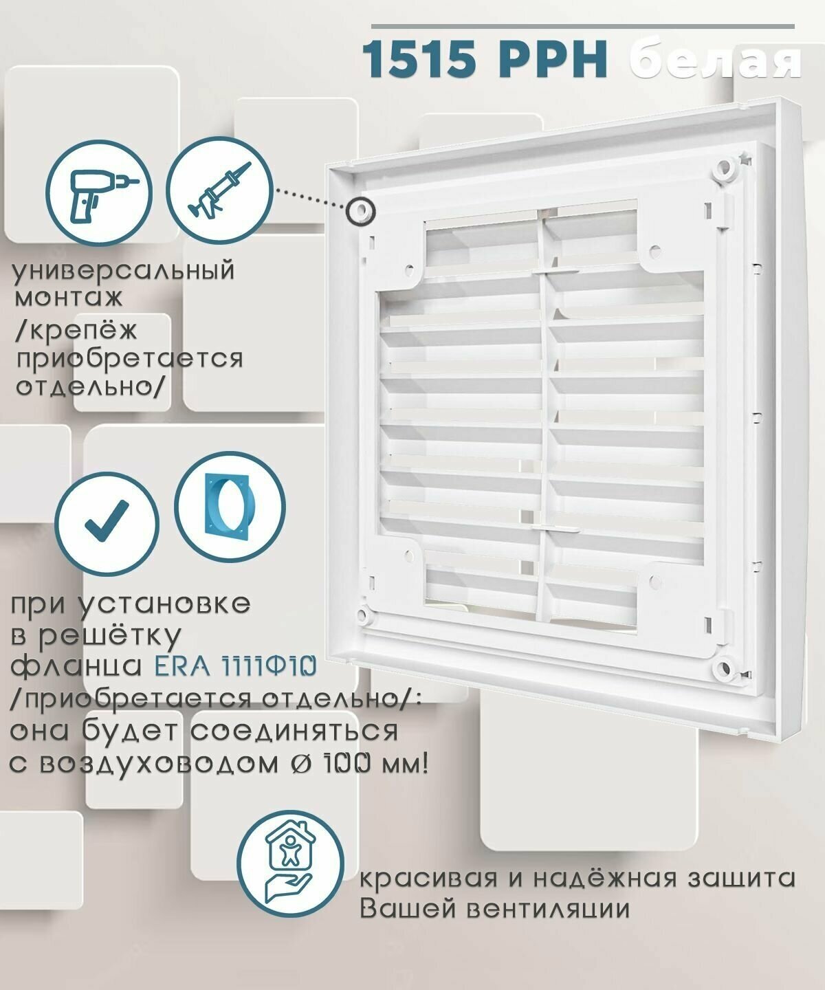 1515РРН Наружная вентиляционная решетка вытяжная 150х150 (белая) ERA