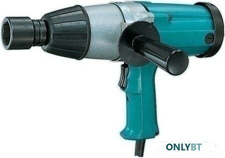 Сетевой ударный гайковёрт Makita – профессиональный инструмент, предназначенный для работы с крепежом, закручивания винтов, гаек. Используется в строительстве для монтажа металлоконструкций. Благодаря очень высокому крутящему моменту, гайковёрт Makita способен закручивать винты от М16 до М22. Корпус гайковёрта Makita выполнен из ударопрочного пластика. Корпус редуктора выполнен из металла, что позволяет эффективнее отводить тепло при нагреве инструмента. Хороший отвод тепла значительно повышает долговечность зубчатых шестерёнок редуктора. Конструкцией гайковёрта предусмотрена замена графитовых щёток, предназначенных для передачи тока на ротор двигателя, при их стирании без разборки инструмента. Для этого в задней части корпуса предусмотрены заглушки, которые снимаются простой шлицевой отвёрткой. Такая конструкция позволяет обслуживать инструмент без привлечения мастера из сервисного центра. Замена графитовых щёток занимает не более одной минуты. Гайковёрт поставляется с дополнительной рукояткой, которая крепится на корпусе редуктора и может быть установлена под любым углом для облегчения работы в любом положении