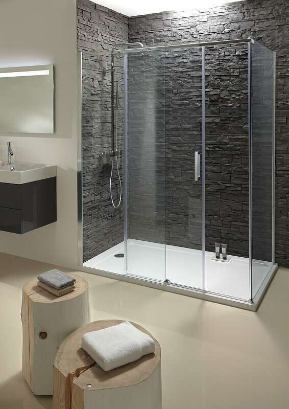 Современная коллекция Contra предлагает ассортимент ограждения из прозрачного стекла как для открытого, так и для закрытого душевого пространства.