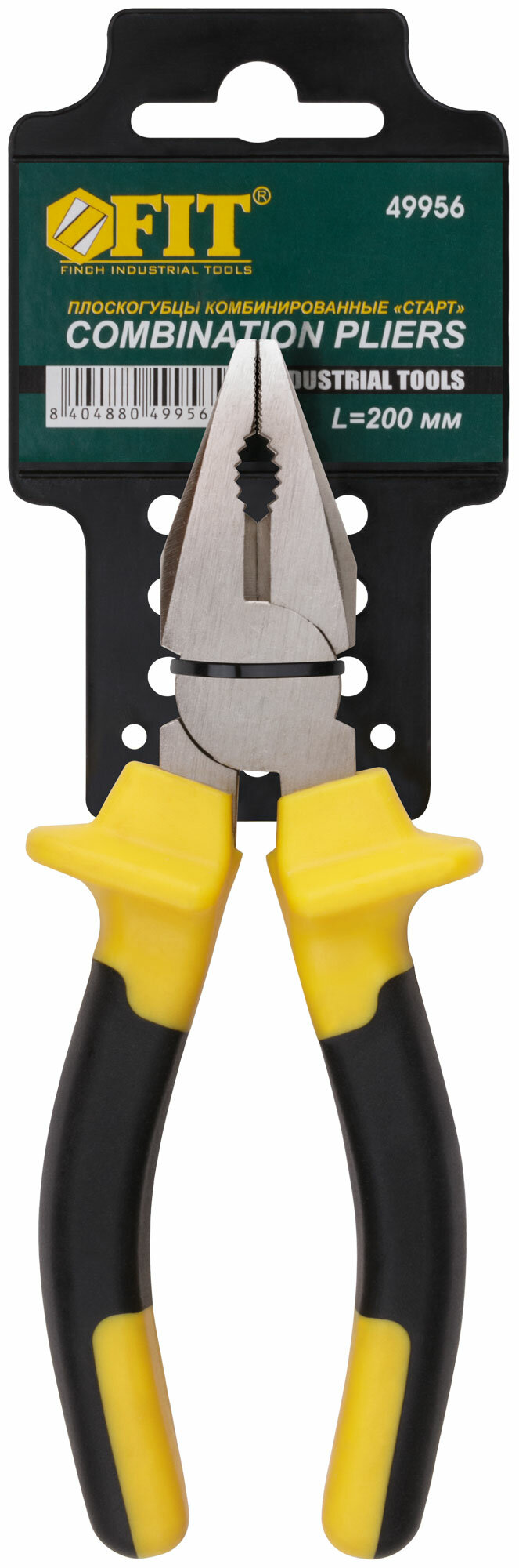 49956 Плоскогубцы комбинированные Старт 200 мм (черно-желтые прорезиненные ручки хром-никелевое покрытие) FIT
