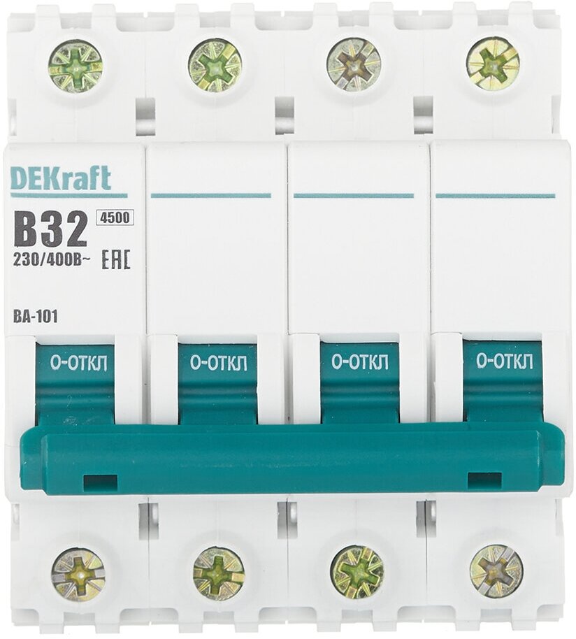 ВА-101 11045DEK Автоматический выключатель четырехполюсный 32А (4.5 кА B) Упаковка (3 шт.) DEKraft