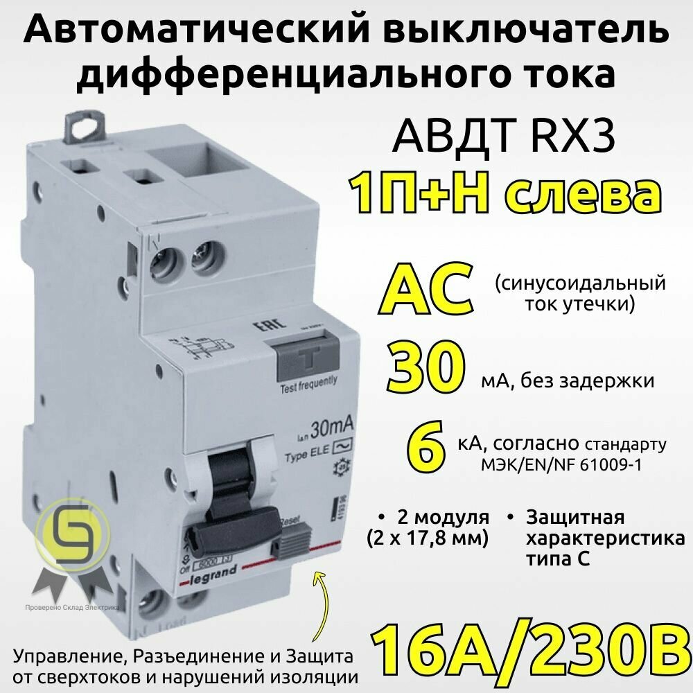 Сервис сравнения цен СкидкаГИД предлагает сравнить цены на товар «RX3 419399 Автоматический выключатель дифференциального тока однополюсный 16А (тип AC 6 кА) Legrand АВДТ»
