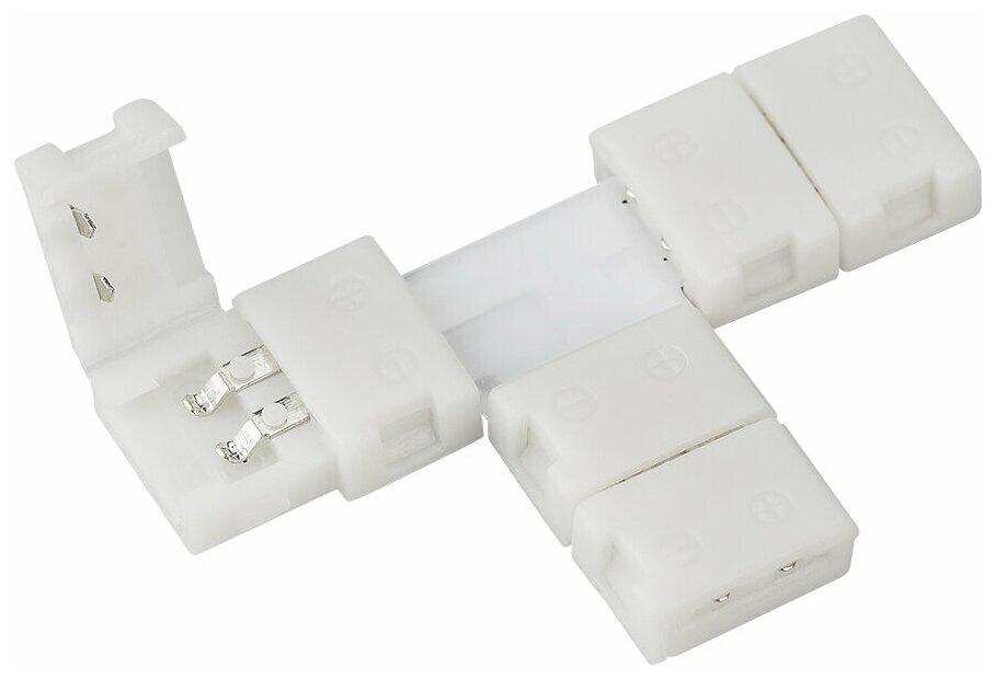 Тройной коннектор (без провода) для соединения 3-х отрезков открытых светодиодных одноцветных лент шириной 8мм. Материал - пластик. Максимальный допустимый ток 3А, напряжение до 50 В. Цена за 1шт.