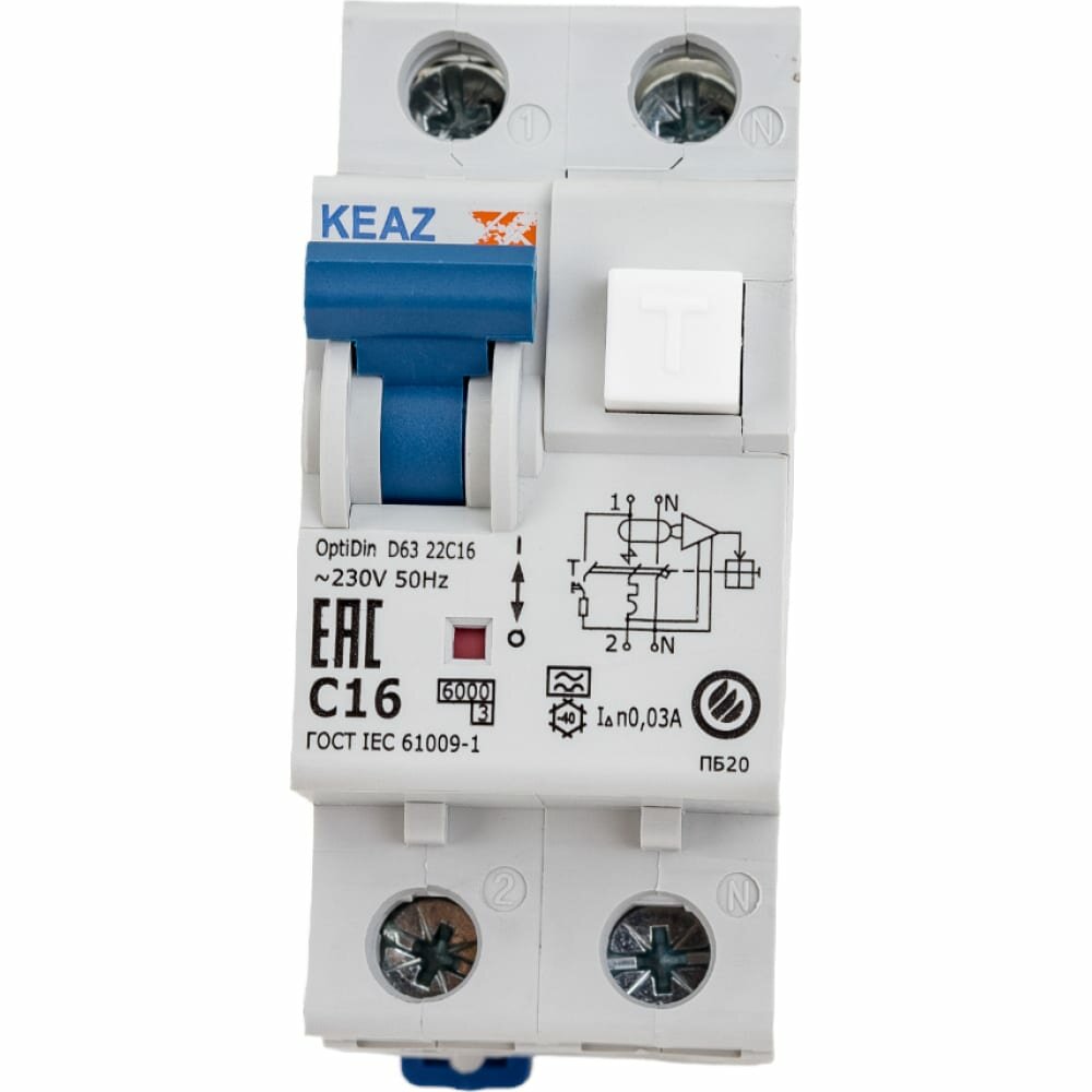OptiDin 103507 Автоматический выключатель дифференциального тока двухполюсный 16А (тип AC 6 кА 30 мА) КЭАЗ OptiDin D63-22C16-A-УХЛ4