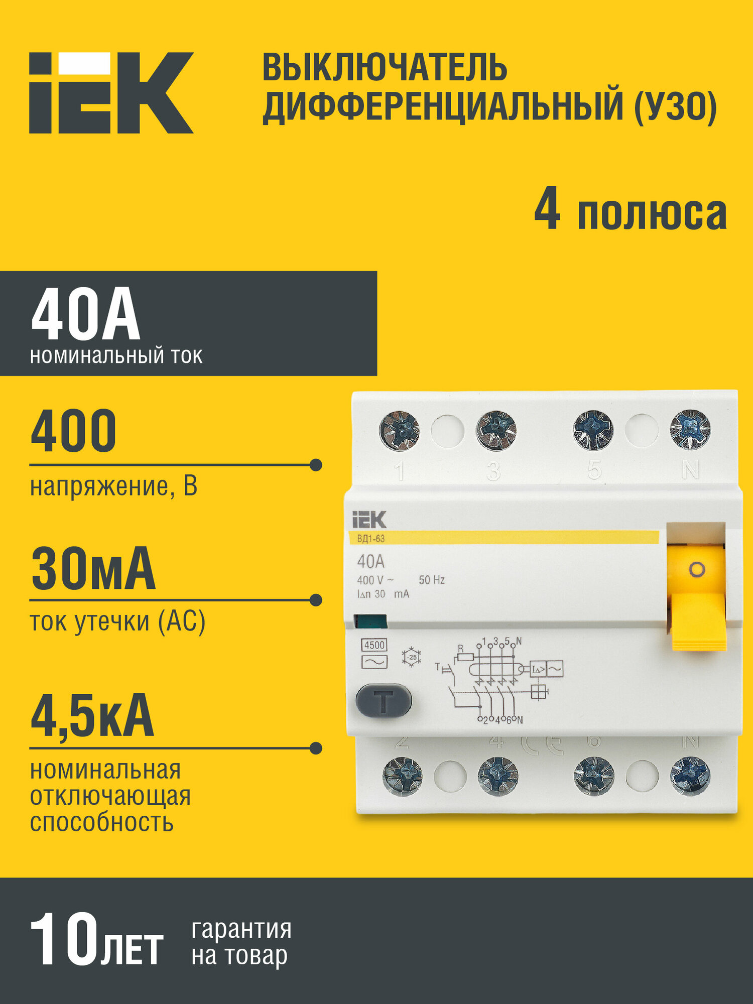 | Тип изделия | Выключатель дифференциального тока (УЗО) |