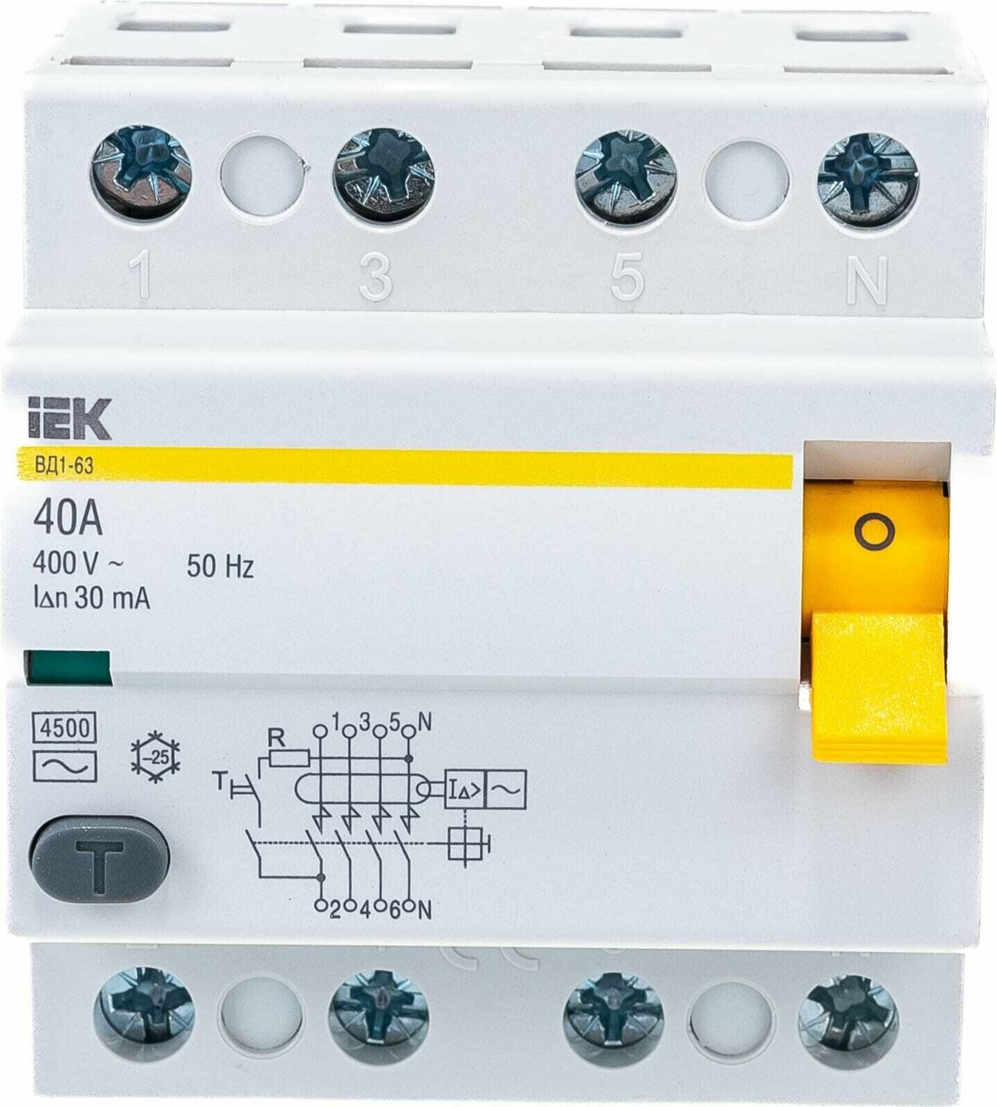 ВД1-63 MDV10-4-032-030 Выключатель дифференциального тока четырехполюсный 32А 30мА (тип AC) IEK