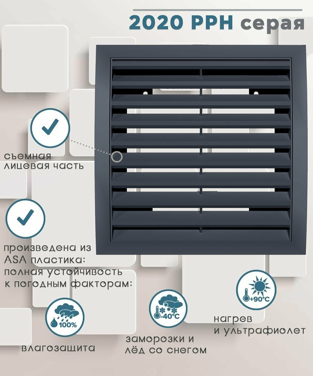 Данная серия изготовлена из ASA-пластика, который является аналогом привычного вам ABS-пластика, но отличается от него атмосферостойкостью и сверхнадежностью. Изделия из ASA-пластика в процессе эксплуатации на внешней стороне зданий не желтеют, не теряют своей прочности, не становятся хрупкими и не трескаются при перепадах температуры. Таким образом, приобретая вентиляционные решетки из ASA-пластика, вы можете быть уверены в том, что они прослужат вам долго и сохранят первоначальный вид.