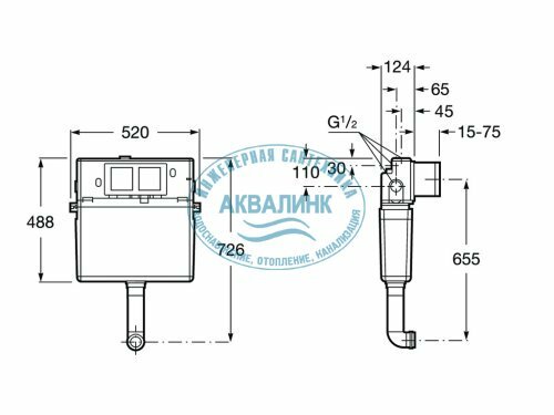 Сливной бачок с двойной системой смыва 6/3, 4,5/3, 4/2 литра. С трубой и шлангом с подводом. Минимальная толщина 125 мм. Резьба подключения 1/2". Возможность подключения не только сбоку слева, но и сверху.