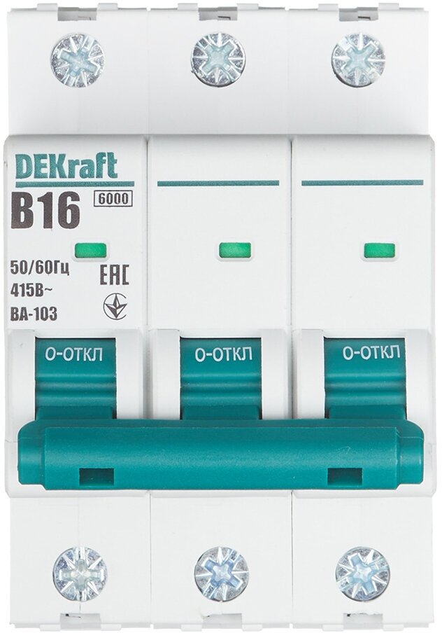 ВА-103 12043DEK Автоматический выключатель трехполюсный 20А (6 кА B) Упаковка (4 шт.) DEKraft