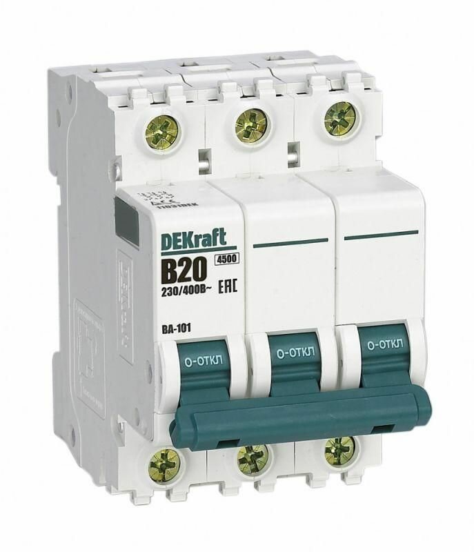 ВА-101 11031DEK Автоматический выключатель трехполюсный 20А (4.5 кА B) Упаковка (4 шт.) DEKraft