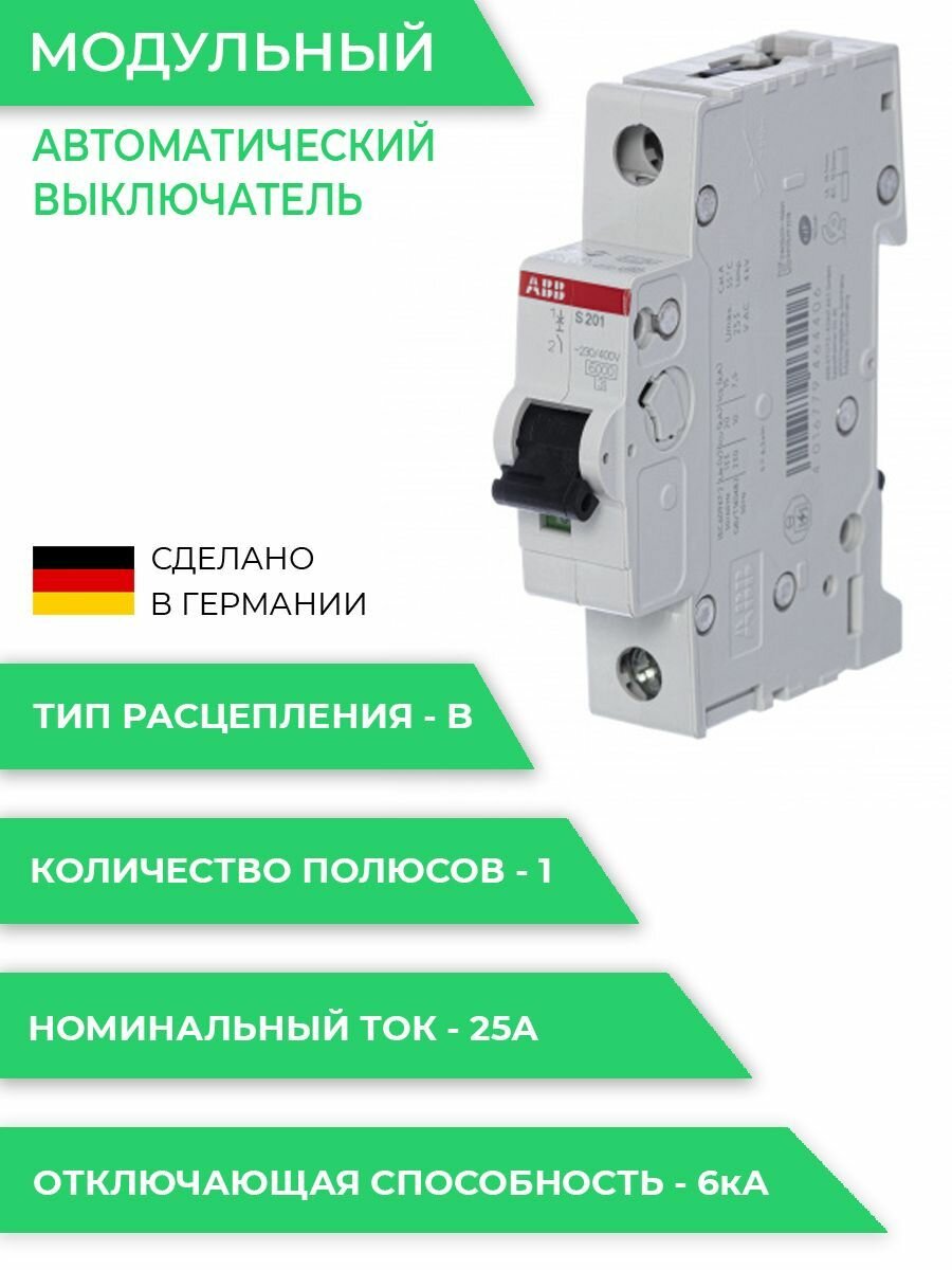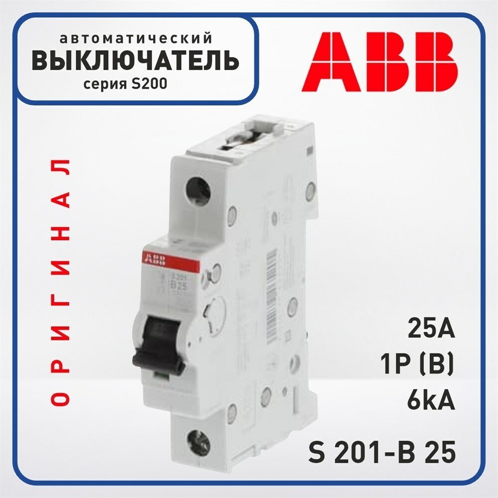 S200 2CDS251001R0255 Автоматический выключатель однополюсный 25А (6 кА B) ABB