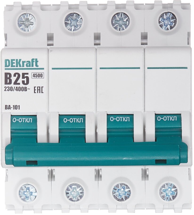 ВА-101 11047DEK Автоматический выключатель четырехполюсный 50А (4.5 кА B) Упаковка (3 шт.) DEKraft