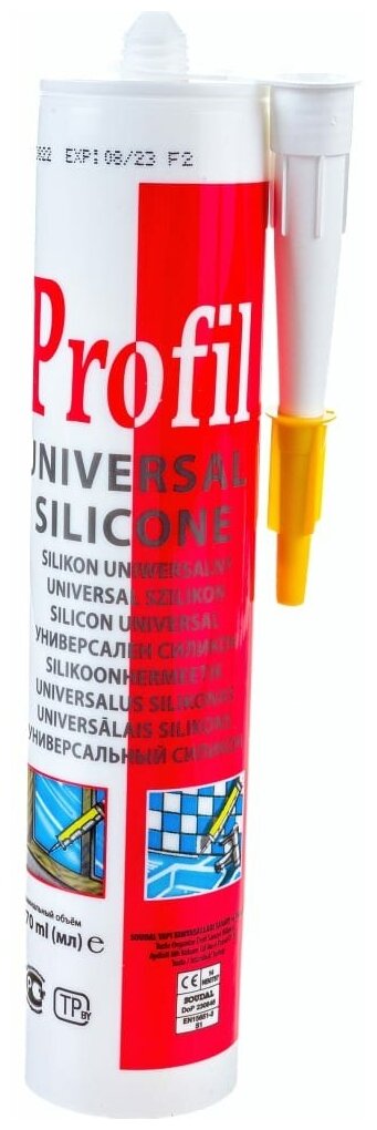 Профиль Универсальный силикон – однокомпонентный силиконовый герметик на кислотной основе многоцелевого назначения. Обладает отличной адгезией к типичным поверхностям - бетону, кирпичу, дереву, стеклу, керамике, глазурованной поверхности и многим металлам (не рекомендуется применять к ПВХ и акрилу, а также подверженным коррозии металлам). После отвердения сохраняет эластичность, устойчив к изменению температур, УФ лучам и образованию плесени. Экологически безопасен.