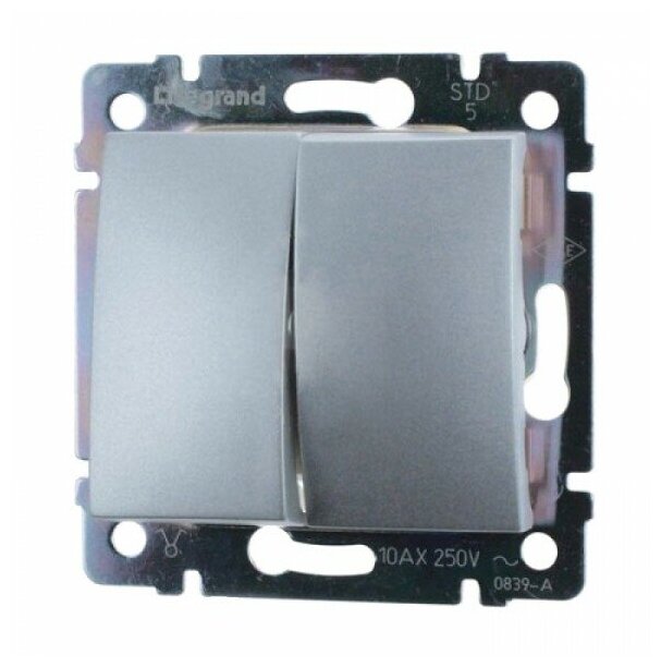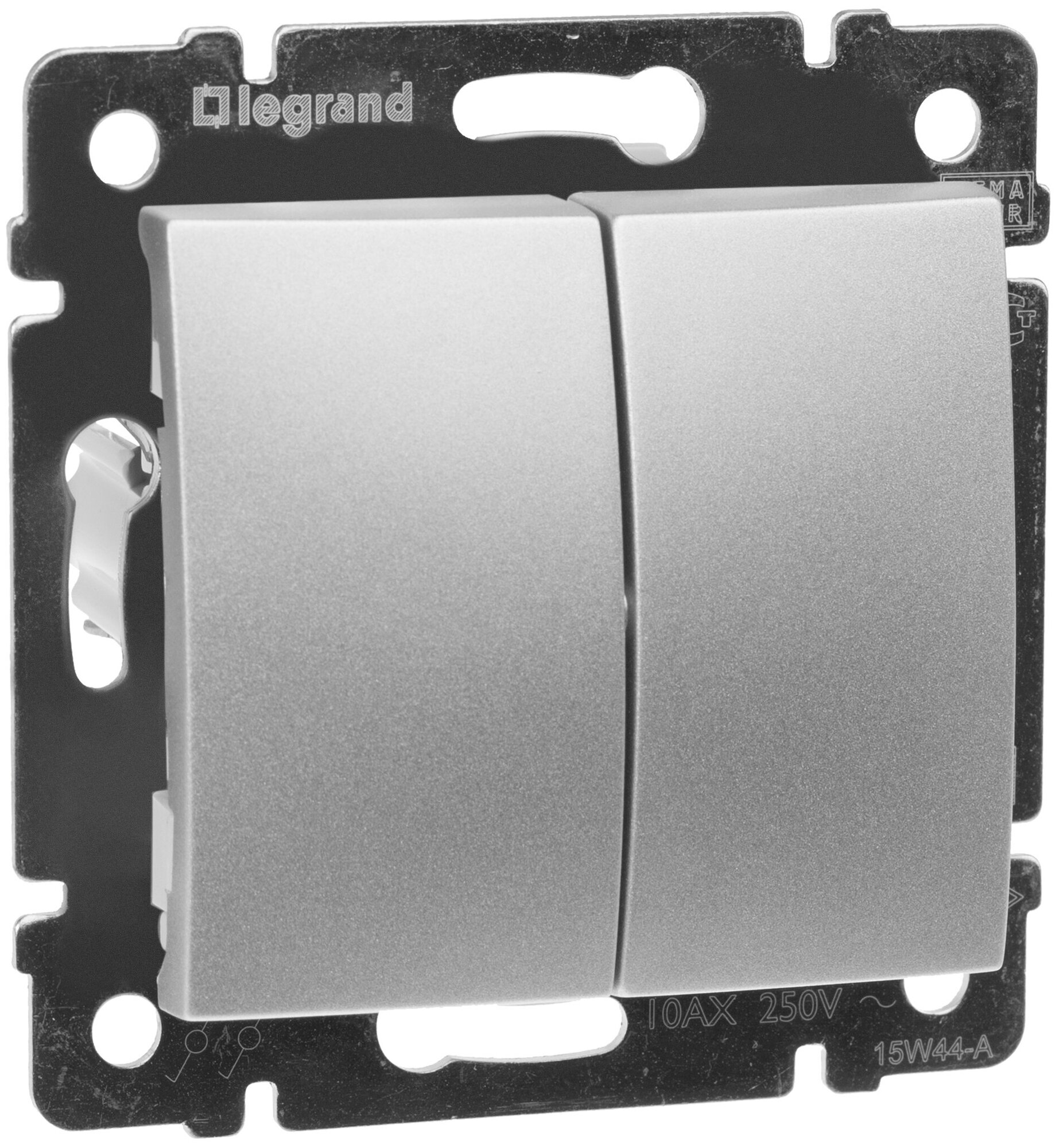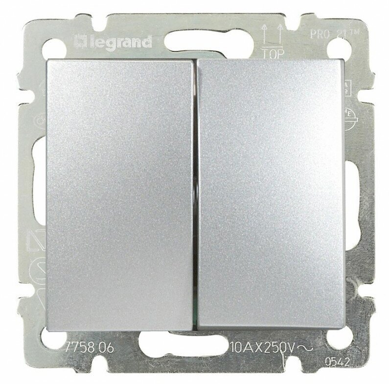 Valena 770108 Переключатель двухклавишный (10 А под рамку с/у алюминий) Legrand