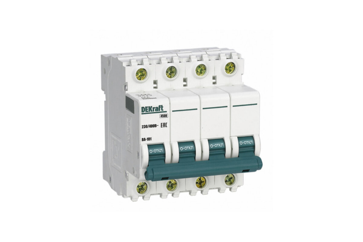 ВА-101 11088DEK Автоматический выключатель четырехполюсный 6А (4.5 кА C) Упаковка (3 шт.) DEKraft
