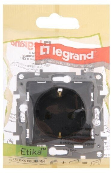 Etika 672621 Розетка с заземляющим контактом (16 А под рамку скрытая установка антрацит) Legrand