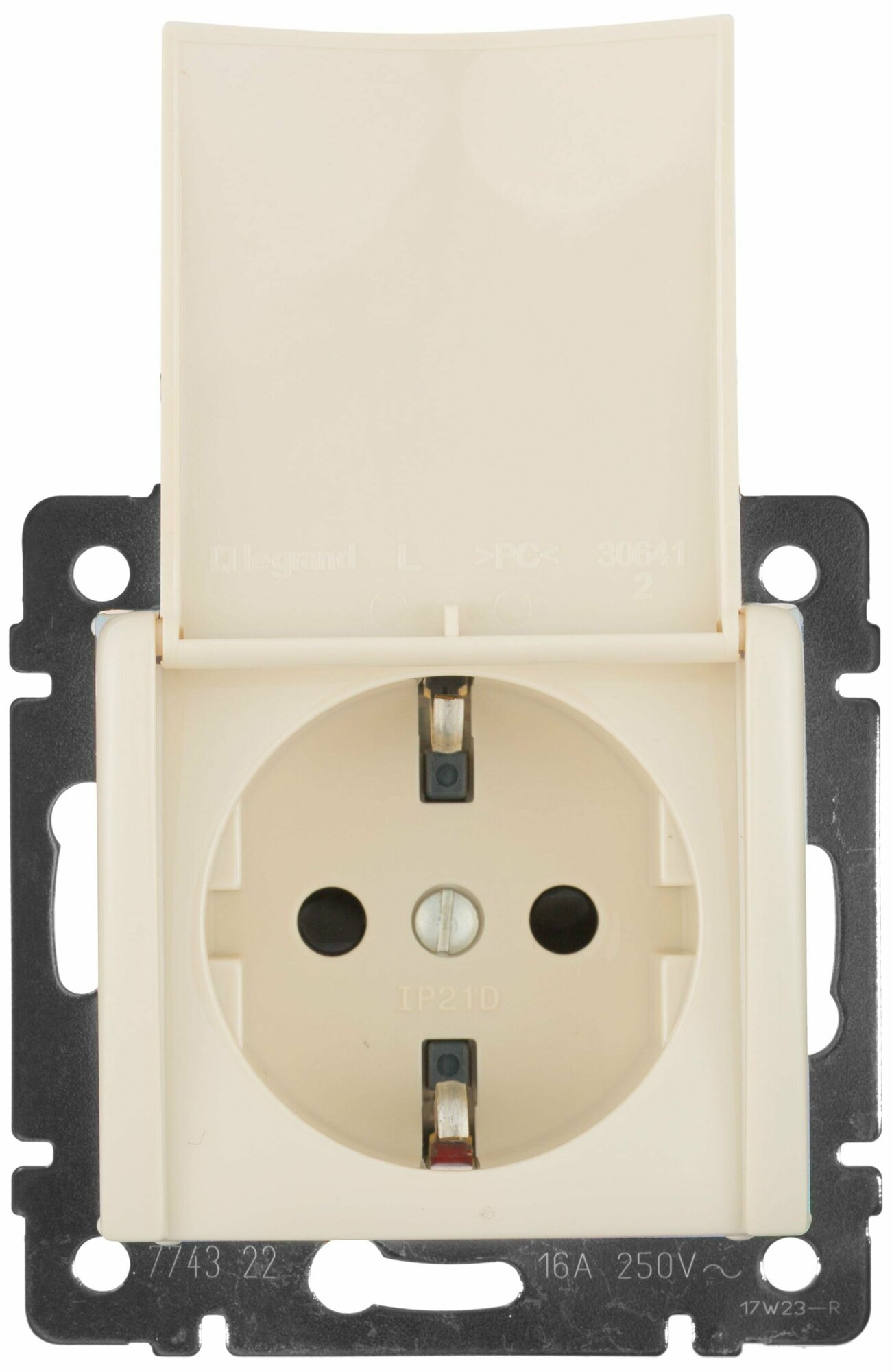 Valena 695614 Розетка с заземляющим контактом (16 А под рамку скрытая установка шторки крышка слоновая кость) Legrand
