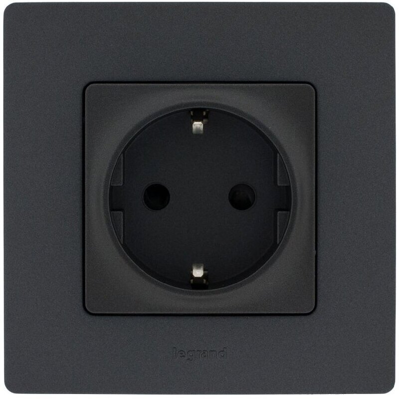Etika 672622 Розетка с заземляющим контактом (16 А под рамку шторки скрытая установка антрацит) Legrand