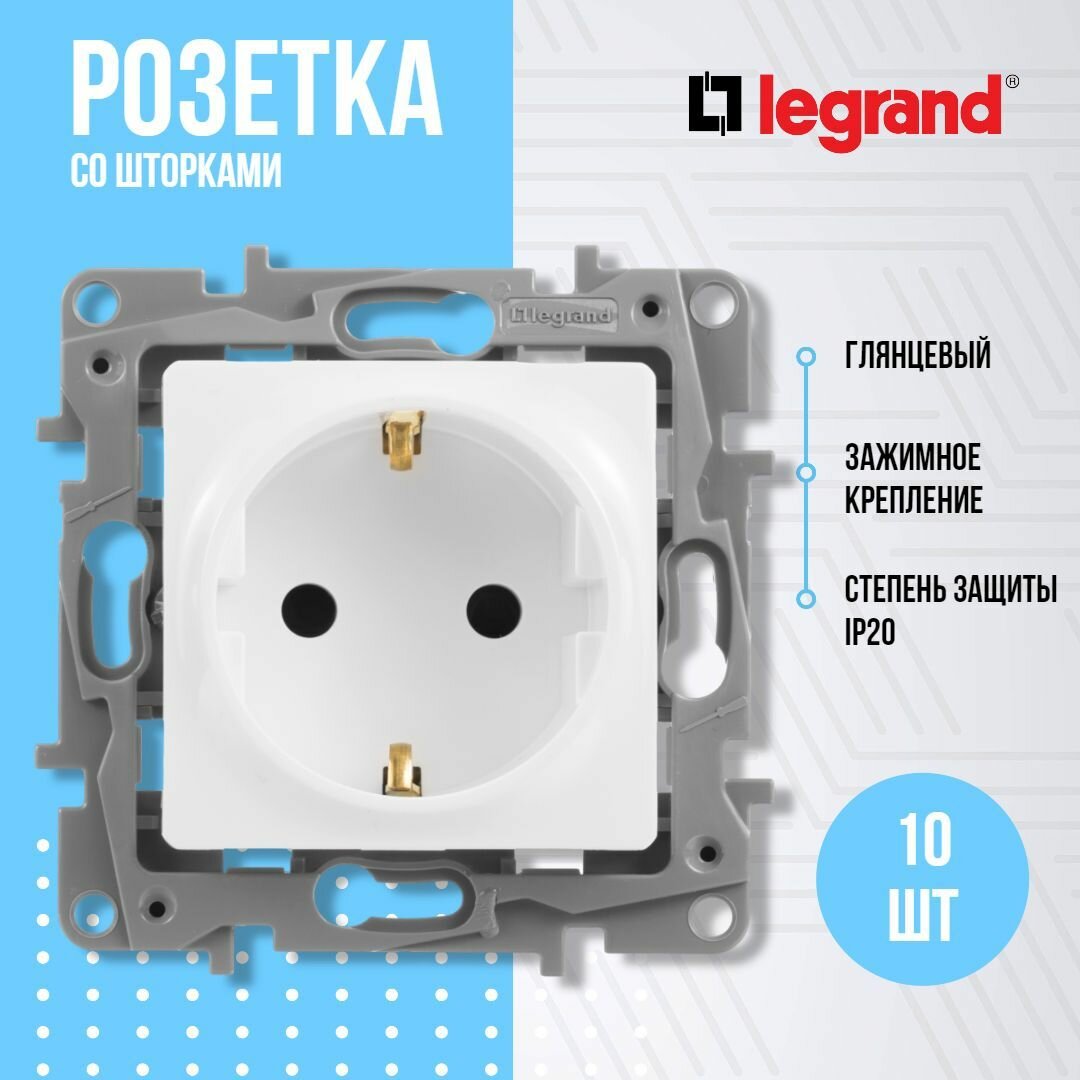 Etika 672222 Розетка с заземляющим контактом (16 А под рамку шторки скрытая установка белая) Legrand