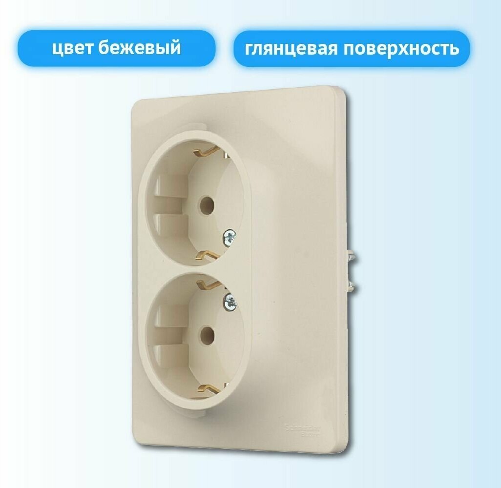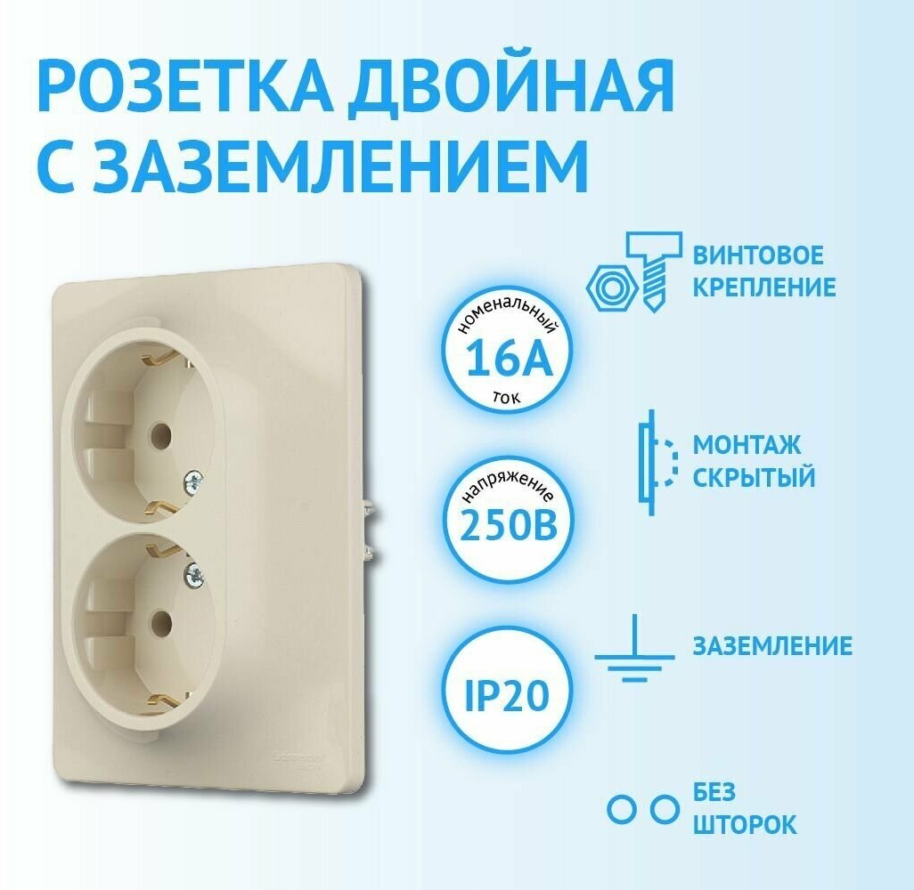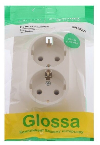 Glossa GSL000224 Розетка двойная с заземляющим контактом (16 А в сборе скрытая установка бежевая) Schneider Electric GSL000224 Glossa
